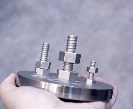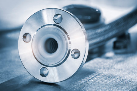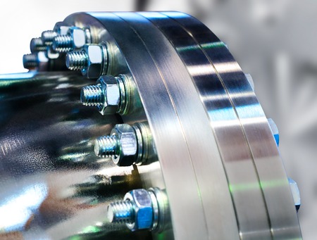 bolted on flange cover on an industrial brushed metal vacuum pipe