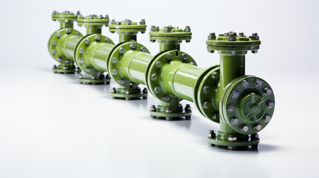 Pipeline system for green renewable energy production. Pipes and green plants. Future industry concept. Generative AI.