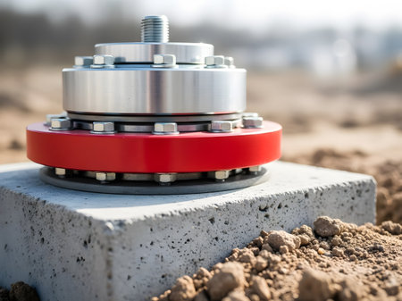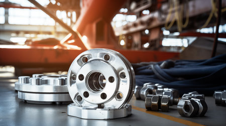 A close-up of a robust metal coupling featuring a threaded hole and securing bolts, highlighting meticulous craftsmanship and reliable mechanical fastening in indust