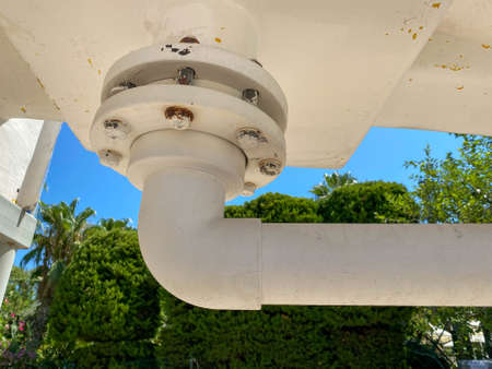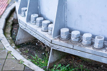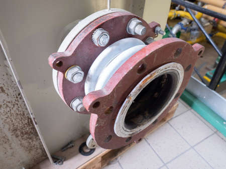 Anti-vibration mounts flange and threaded screws from galvanized steel. Expansion joint member. Chemical industry production plant.