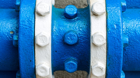 A striking cobalt pipe featuring crisp white bolt details, highlighting industrial design and craftsmanship with a bold, vivid color palette.
