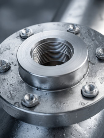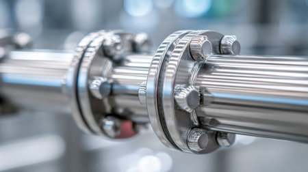 Precision-engineered stainless steel assembly featuring a secure flange joint bonded by sturdy bolts, emphasizing industrial craftsmanship and seamless metal fusion.