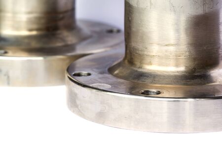 Flanged vacuum equipment. Shiny metal surface. A metal surface treated.