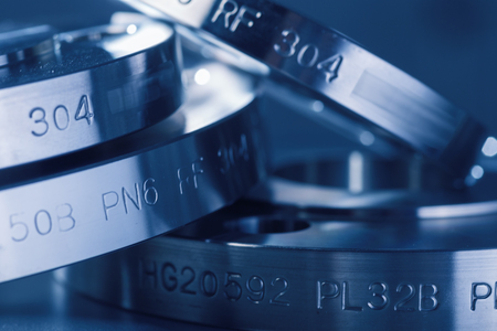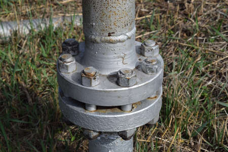The metal pipeline with big flanges.