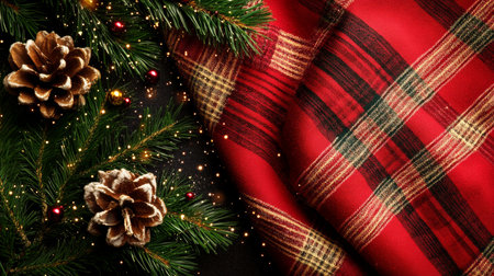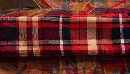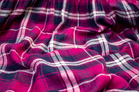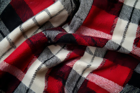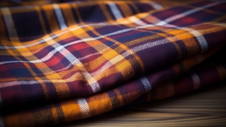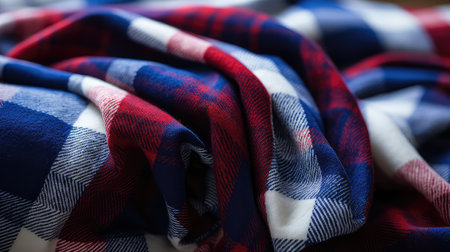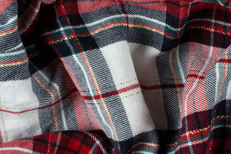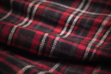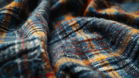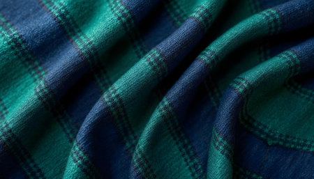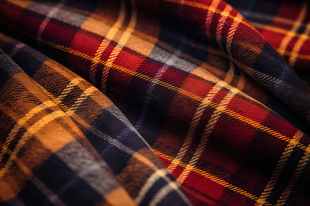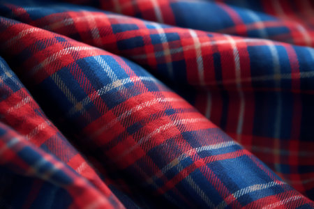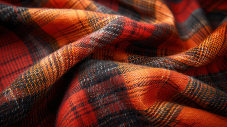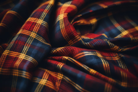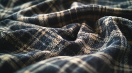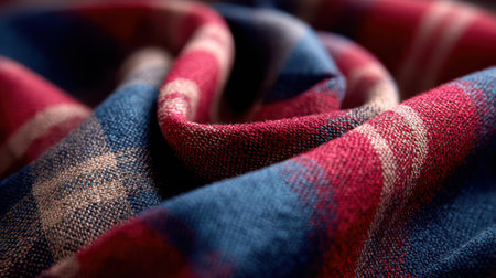 Intricate folds of plaid fabric reveal the rich texture of a tartan pattern under soft, diffused lighting