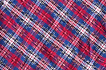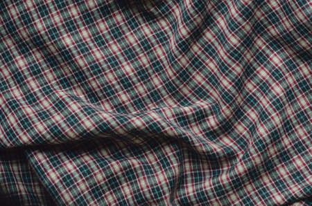 Texture, background, pattern. The fabric is checkered. Scottish tartan is a weave that usually has a glossy surface and a dull back, Satin weave is characterized by four or more filler or weft threads
