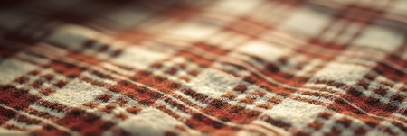Cozy red and beige plaid fabric pattern with soft textures. That the image is generated using AI.