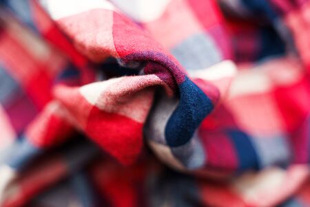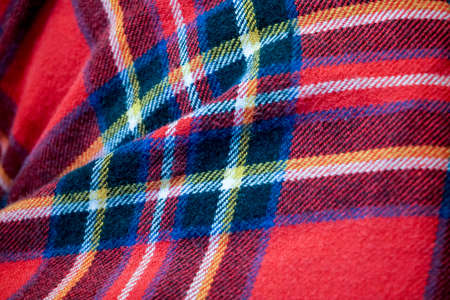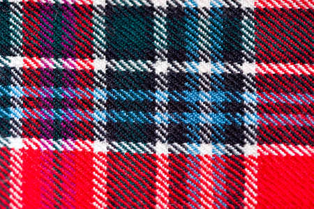 Close up of traditional Scottish woolen tartan fabric. Checkered cashmere plaid.