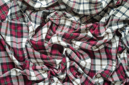 Wrinkled plaid fabric. Background crumpled cloth in a cage