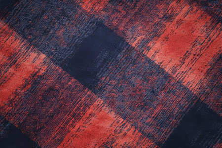 A cozy flannel fabric texture background in warm red and navy plaid. The brushed, soft fibers provide a comforting, autumnal feel, perfect for cold-weather apparel, blankets, and rustic cabin decor.
