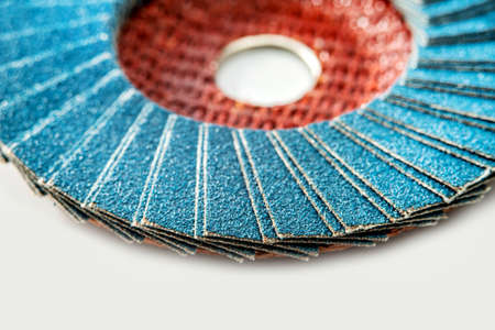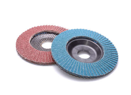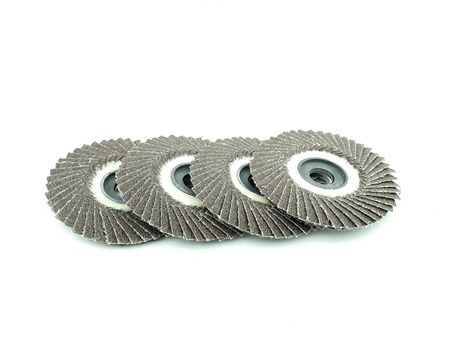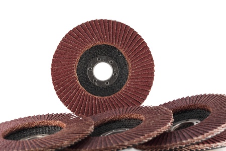 Flap abrasive disks isolated on white. Good for grinding, metal finishing, sanding. Professional equipment