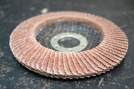 A closeup shot of a flap wheel for metal finishing