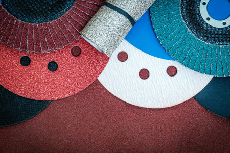 close up flat sandpaper sanding grinding polishing wheels blades