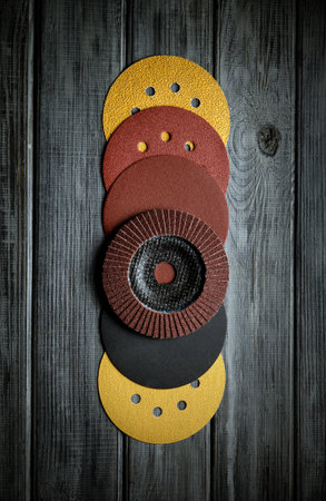 Abrasive round tools for polishing on black boards. Low key concept for renovation or construction.