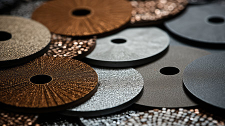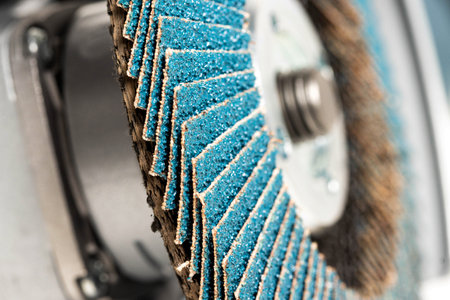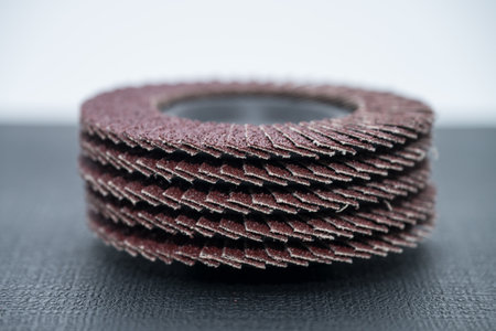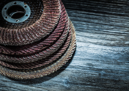 A pile of flap abrasive disks industrial background. Good for grinding, metal finishing, sanding. Professional equipment