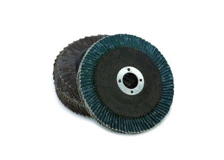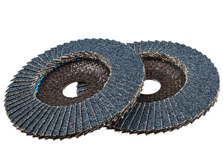 Flap abrasive disks isolated on white. Good for grinding, metal finishing, sanding. Professional equipment