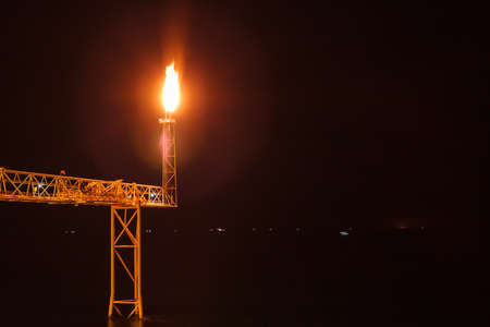 Gas burn or Flare burn in offshore location, Oil and gas process.