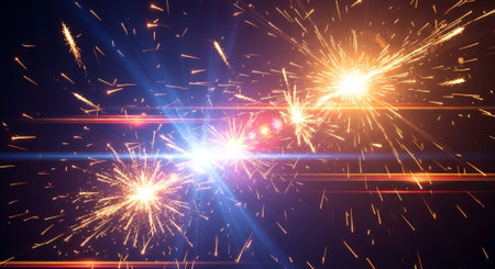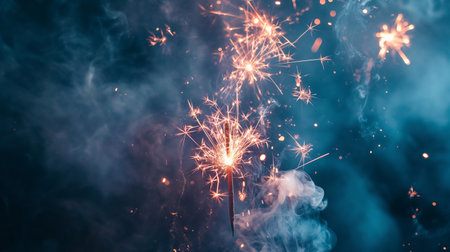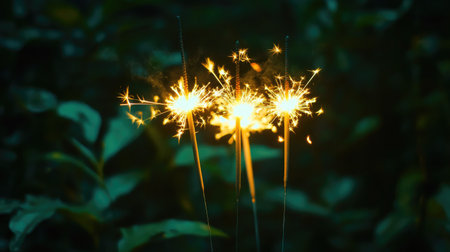Sparklers ignite with bright sparks and glowing embers against a dark background