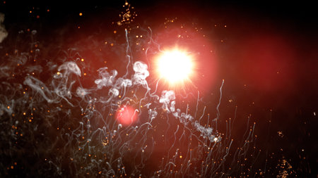 sparks of pyrotechnics close up in foreground
