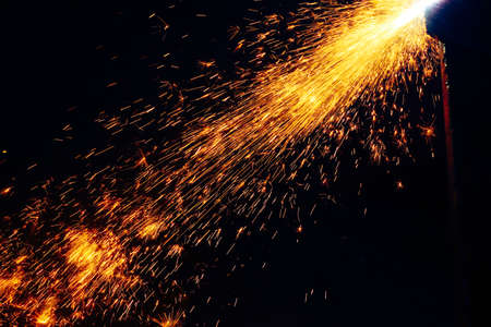 Sparks from cutting metal with sparks flying in the air.