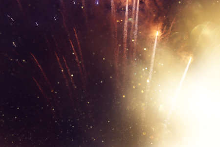 background of abstract gold and black glitter lights with fireworks. defocused