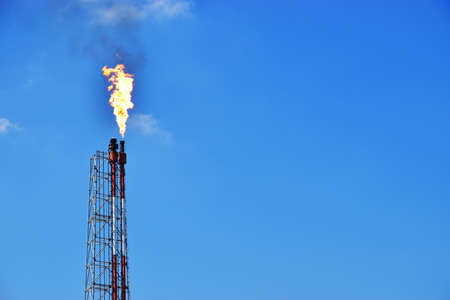 Gas flame torch on a oil refinery plant. Oil industry in Bahrain, Middle East
