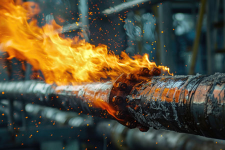 Industrial pipeline on fire with intense flames and sparks, symbolizing energy and danger AI