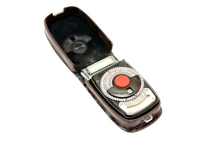 Retro exposure meter (light meter) close-up isolated on white background