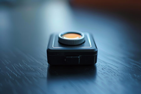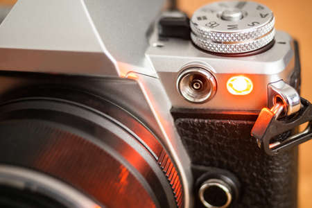 Small professional digital camera is sitting on a table, waiting to capture the perfect shot
