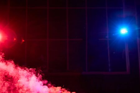 Color smoke on black background. Colorful red and blue background for photo shoot. Colored smoke illuminated by a flash