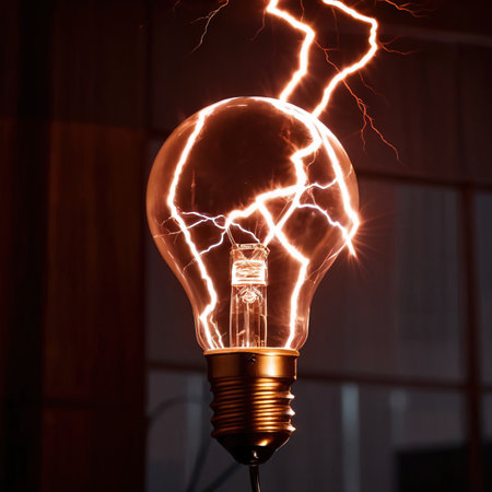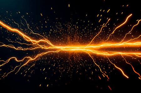 An illustrative image presents a glass jar containing an electric arc, with sparks and energy illuminating the interior. The composition showcases a darkened environment, emphasizing the bright, vibrant nature of the electric current. It may be used for educational material or design projects centered around science or technology.