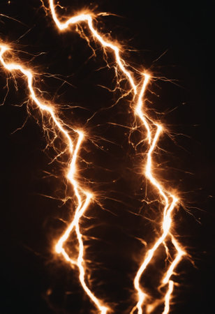Dynamic motion blur of light trails resembling lightning on a dark background