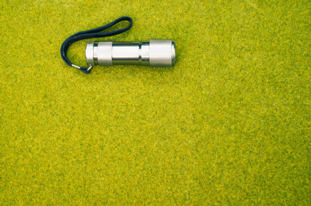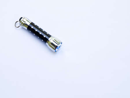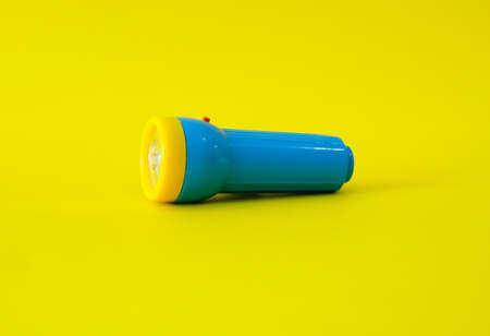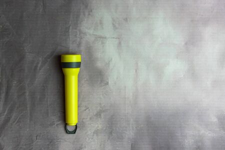 Yellow color torch or flashlight, isolated on grunge or grey background. Copy Space.