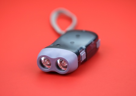 Small Custom Pocket Flashlight Shining On Red Background Gradient