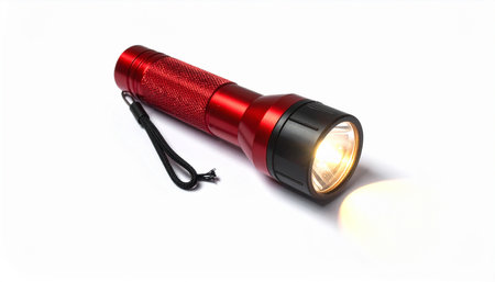 Red flashlight lies on a white background