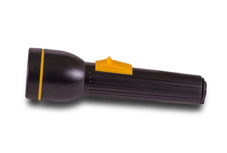Black and yellow flashlight isolated on white background
