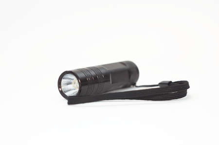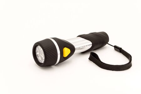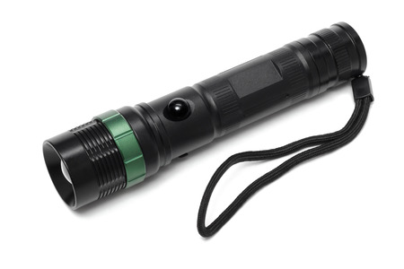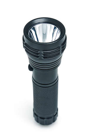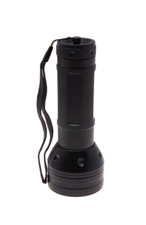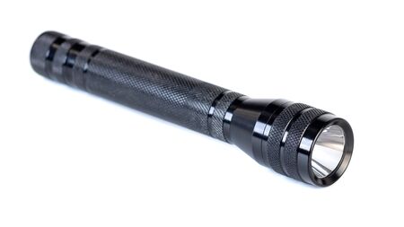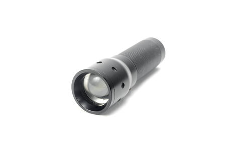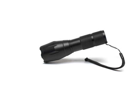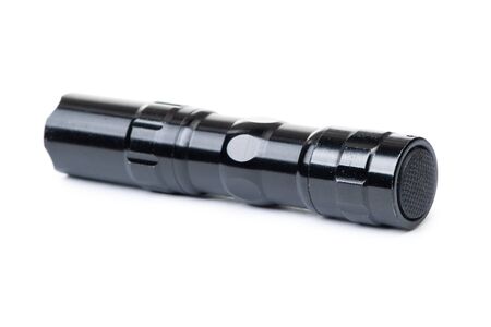 Black flashlight isolated on a White Background. Object.