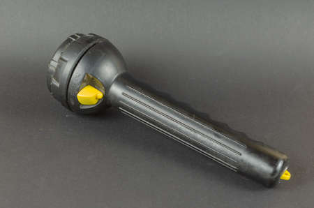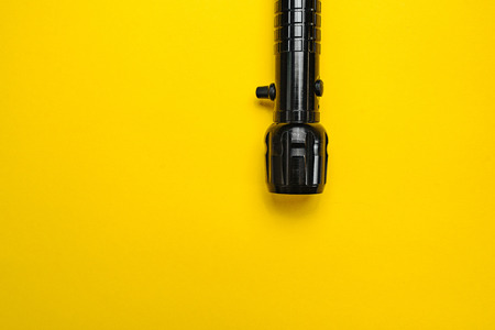 Flashlight on a bright yellow background. High quality photo.