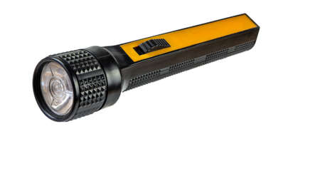 Yellow and black pocket electric flashlight isolated on white background