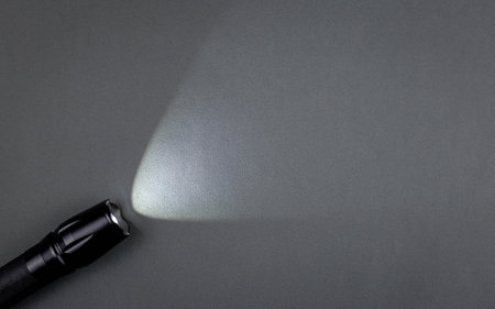 led flashlight on gray background with copy space