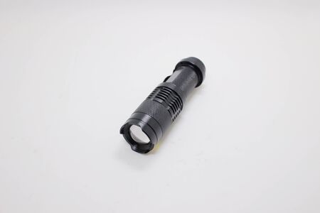 Small black flashlight on white