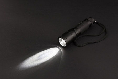 Flashlight and a beam of light in darkness