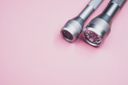 Two powerful flashlights emit bright white light on a textured blue surface, making them perfect for camping, emergency situations, or nighttime adventures.
