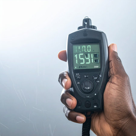 A professional photographer or cinematographer holds a digital light meter, carefully measuring the ambient light to achieve the perfect exposure. This moment of technical precision is crucial for capturing a high-quality image or scene in a studio setting.