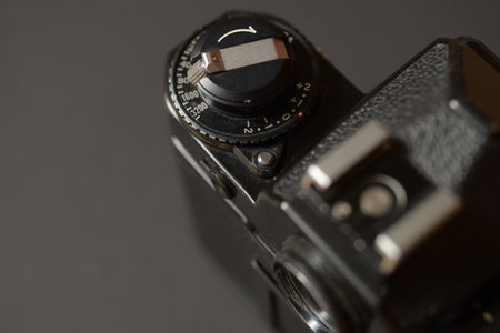 Setting wheel for ISO and aperture on an old camera photographed in the studio