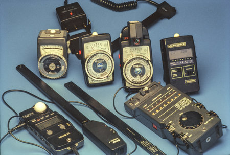 21 Oct 2020 Vintage Different types of Gossen Minolta Broncolor Exposure Meters and Sinar Probes Studio shot Lokgram Kalyan Maharashtra India.