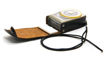 The old soviet exposure meter isolated on a white background. A piece of vintage photo tool.