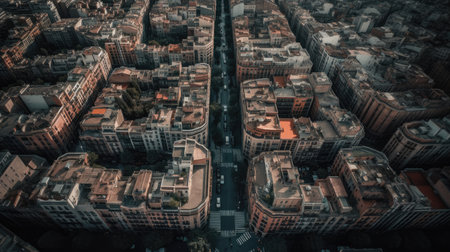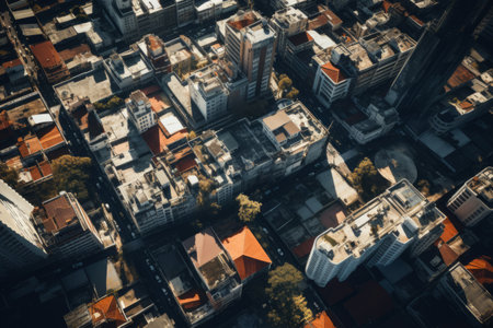 urban landscape of buildings, aerial view of busy city street, created with generative ai
