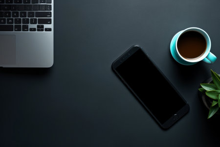 smartphone and other supplies with cup of coffee. Generative Ai