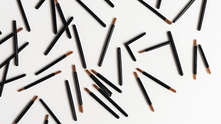This image features a random arrangement of black makeup brushes on a clean white surface, emphasizing simplicity and elegance in beauty tools.